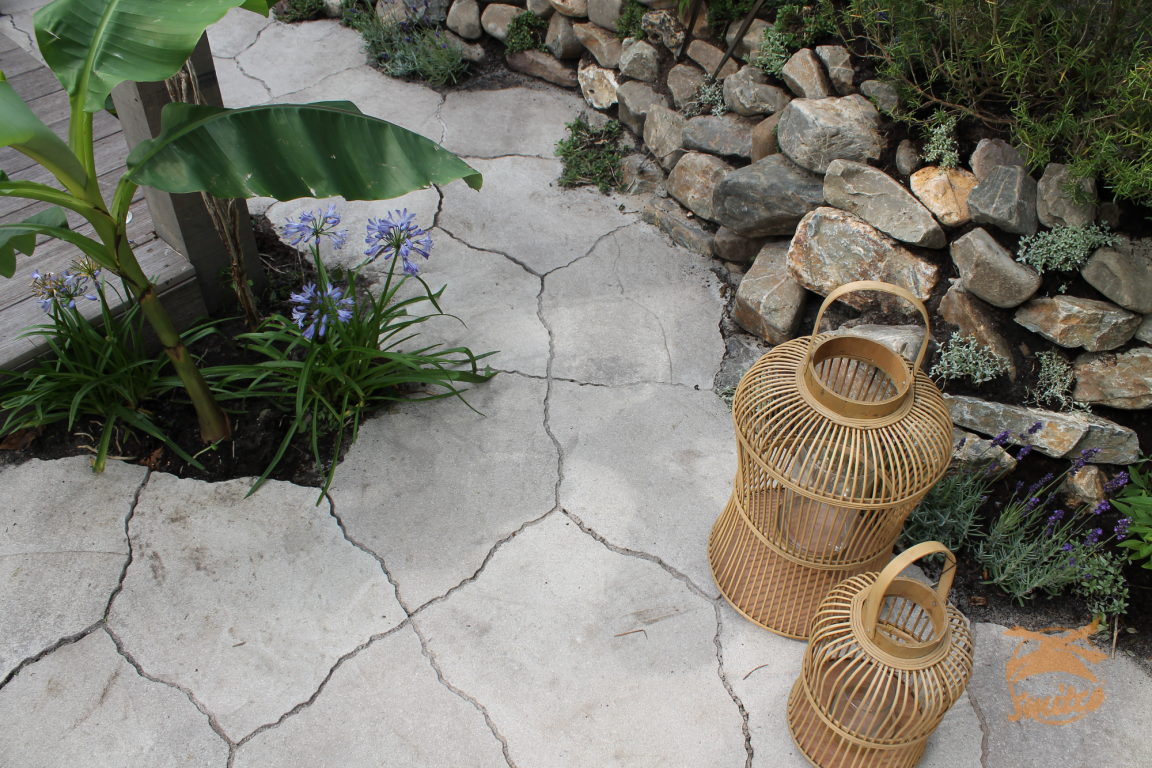 GeoArdesia Alivo ( Ook wel Dunia Ardesia Alivo genoemd) Is een zeer mooi type bestrating. Door het "richtingloze" verband geeft deze tegel geen beperkingen op het ontwerp terwijl de steen eenvoudig te leggen is. Tuinarchitecten werken de rand vaak af met een mooie grindsoort of beplanten deze.Verpakking