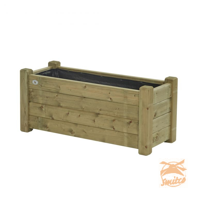 Door de degelijke hoekverbinding met pen- en gat is dit een bloembak die jarenlang meegaat. De dikte van het hout is 35mm, de buitenmaat 40x100cm. De bloembak is gemaakt van Noord-Europees vurenhout voorzien van een FSC®-keurmerk en wordt compleet gemonteerd geleverd inclusief stevige bodem en anti-worteldoek.Verpakking