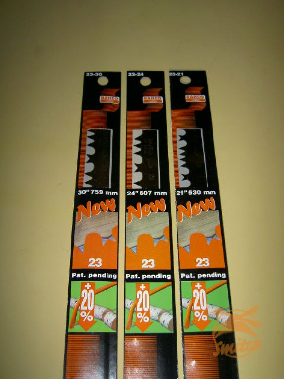 Beugelzaagblad met hoog frequentie geharde tanden. Driehoekig gezet voor het zagen van groen hout. Elke vijfde tand is beitelvormig en niet gezet waardoor deze functioneert als een schaaf en spaanders uit te groene hout verwijdert.Verpakking