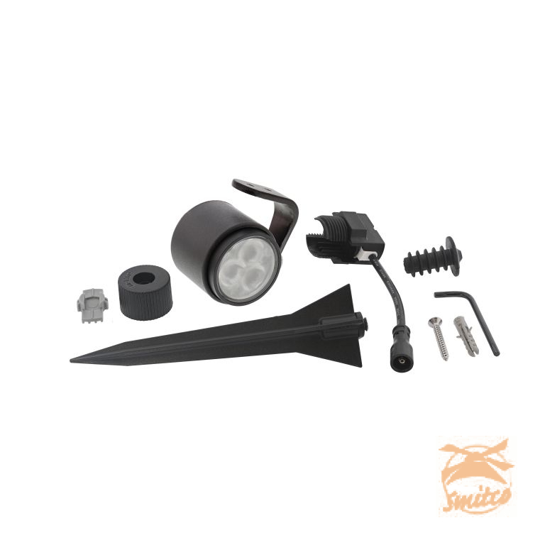 Deze kleine spot wordt standaard geleverd met een beugel en grondpen.De EASY-LOCK wordt standaard meegeleverd bij dit armatuur. De kabellengte aan dit armatuur is 60cm.
