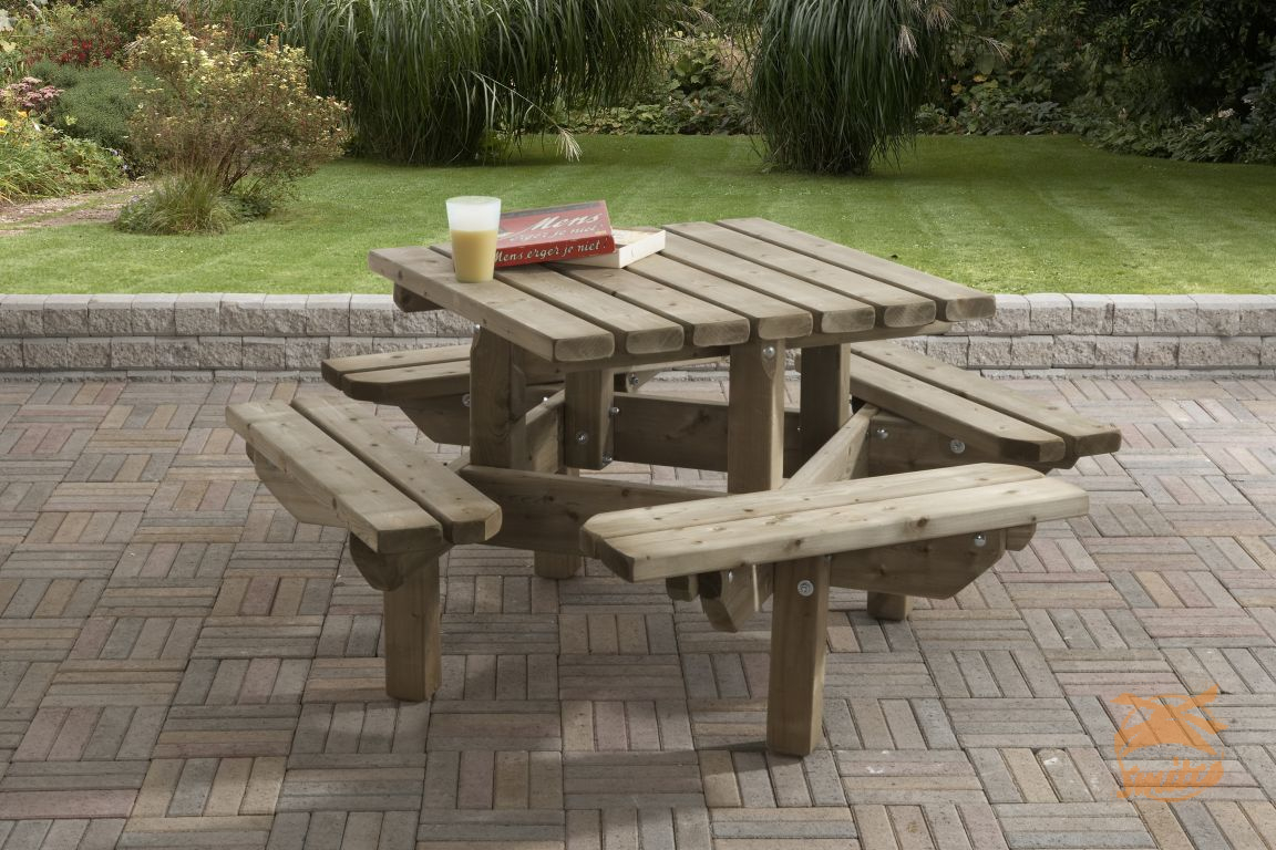 Kinderpicknicktafel Leuven 125x125 Vierkant, dikte 35 mm.