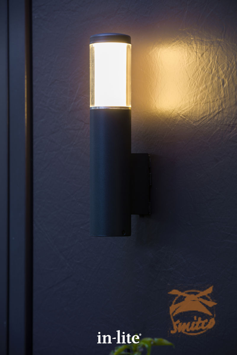 Wandlamp LIV WALL is uitgevoerd in donkergrijs gecoat aluminium met een smalle zilverkleurige ring. Geeft rondom een sfeervol warm wit licht.De EASY-LOCK wordt standaard meegeleverd bij dit armatuur. De kabellengte aan dit armatuur is 60cm.